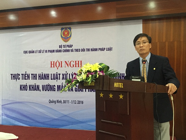 Chiều ngày 30/11/2016, Bộ Tư pháp đã tổ chức Hội nghị thực tiễn thi hành Luật xử lý vi phạm hành chính – khó khăn, vướng mắc và giải pháp tháo gỡ tại thành phố Hạ Long, tỉnh Quảng Ninh. Tham dự Hội nghị có sự góp mặt của Thứ trưởng Nguyễn Khánh Ngọc, nguyên Bộ trưởng Bộ Tư pháp Hà Hùng cường, đại diện Lãnh đạo cơ quan pháp chế một số Bộ, cơ quan ngang Bộ, Sở Tư pháp, cơ quan Công an, Hải quan, Kiểm lâm, Quản lý thị trường… của một số tỉnh đồng bằng Bắc Bộ.