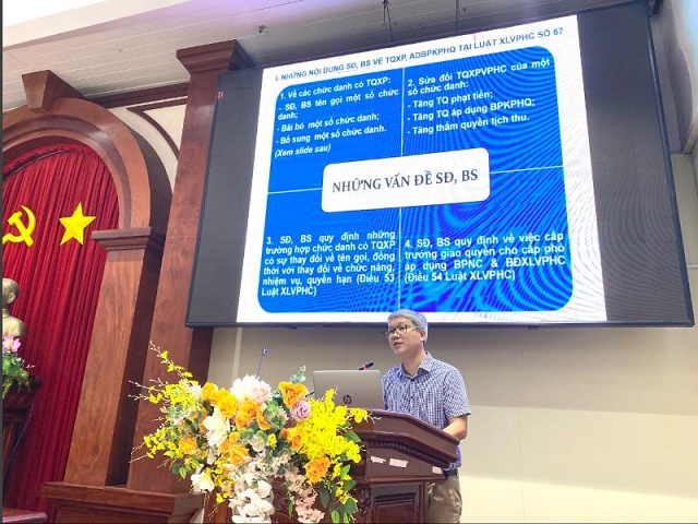 Tại Hội nghị, các đại biểu tham dự tập huấn đã được nghe các giảng viên là các chuyên gia có năng lực, trình độ, có kiến thức và kinh nghiệm thực tiễn của Cục QLXLVPHC&TDTHPL, Bộ Tư pháp truyền đạt 5 chuyên đề: (i) Một số vấn đề chung về xử phạt vi phạm hành chính và những nội dung cơ bản về xử phạt vi phạm hành chính quy định trong Luật số 67/2020/QH14 ngày 13/11/2020; (ii) Hình thức xử phạt vi phạm hành chính và các biện pháp khắc phục hậu quả; (iii) Thẩm quyền xử phạt vi phạm hành chính và áp dụng biện pháp khắc phục hậu quả; (iv) Thủ tục xử phạt, thi hành quyết định xử phạt và cưỡng chế thi hành quyết định xử phạt vi phạm hành chính; (v) Các biện pháp ngăn chặn và bảo đảm xử lý vi phạm hành chính.