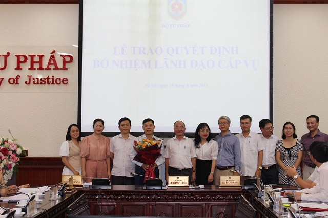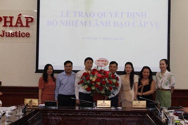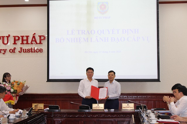 Thay mặt Ban Cán sự Đảng, Lãnh đạo Bộ, Bộ trưởng Lê Thành Long đã trao Quyết định về việc điều động, bổ nhiệm đồng chí Nguyễn Quốc Hoàn, Chánh Văn phòng Bộ Tư pháp giữ chức vụ Cục trưởng Cục Quản lý xử lý vi phạm hành chính và theo dõi thi hành pháp luật, Bộ Tư pháp.