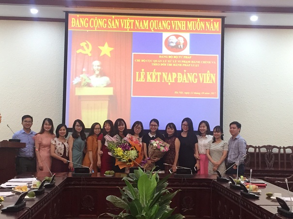 Ngày 12/10/2017, Chi bộ Cục QLXLVPHC&TDTHPL tổ chức Lễ Kết nạp Đảng viên đối với các quần chúng ưu tú Nguyễn Thị Ngân và Phạm Thị Tuyết. Đây là những đồng chí có quá trình phấn đấu, rèn luyện tích cực, có nhiều thành tích đóng góp vào thành tích chung của cơ quan, đơn vị, được cơ quan ghi nhận, đánh giá đủ điều kiện để phát triển Đảng nên đã được tập trung bồi dưỡng để trở thành những Đảng viên mới của Chi bộ. Tham dự Lễ kết nạp có đồng chí Đặng Thanh Sơn, Bí thư Chi bộ - Cục trưởng Cục QLXLVPHC&TDTHPL; đồng chí Cao Xuân Thủy – Phó Chánh Văn phòng Đảng – Đoàn thể Bộ Tư pháp cùng toàn thể Đảng viên và quần chúng Cục QLXLVPHC&TDTHPL.