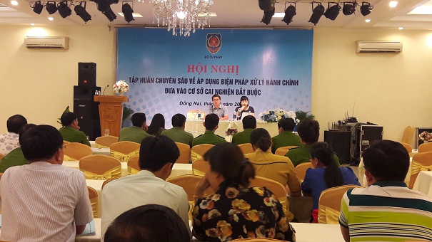 Thực hiện Quyết định số 506/QĐ-BTP ngày 10/4/2017 của Bộ trưởng Bộ Tư pháp Phê duyệt Kế hoạch tổ chức hội nghị, hội thảo, tọa đàm, tập huấn và các đoàn thanh tra, kiểm tra, khảo sát của Bộ Tư pháp năm 2017, ngày 28-29/9/2017 Cục Quản lý xử lý vi phạm hành chính và theo dõi thi hành pháp luật phối hợp với Cục Phòng chống tệ nạn xã hội, Bộ Lao động – Thương binh và Xã hội tiến hành tổ chức Hội nghị tập huấn chuyên sâu về áp dụng biện pháp xử lý hành chính đưa vào cơ sở cai nghiện bắt buộc tại tỉnh Đồng Nai.