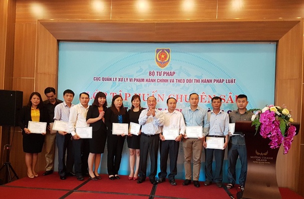 Kết thúc chương trình tập huấn, Cục Quản lý xử lý vi phạm hành chính và theo dõi thi hành pháp luật, Bộ Tư pháp đã trao Giấy chứng nhận cho các học viên hoàn thành chương trình tập huấn chuyên sâu về pháp luật xử phạt vi phạm hành chính.