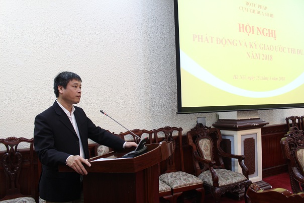 Hưởng ứng Kế hoạch phát động phong trào thi đua ngành Tư pháp năm 2018 và nhằm tạo khí thế thi đua, quyết tâm hoàn thành xuất sắc các chỉ tiêu, nhiệm vụ công tác tư pháp được giao, góp phần thực hiện thắng lợi Nghị quyết số 01/NQ-CP ngày 01/01/2018 của Chính phủ về nhiệm vụ, giải pháp chủ yếu thực hiện Kế hoạch phát triển kinh tế - xã hội, góp phần hoàn thành các chỉ tiêu kinh tế - xã hội năm 2018 và kế hoạch phát triển kinh tế, xã hội 5 năm (2016-2020) của cả nước, sáng ngày 15/3/2018, Cụm thi đua số III tổ chức Hội nghị phát động tới toàn thể công chức, viên chức, người lao động các đơn vị thuộc Cụm phong trào thi đua năm 2018.