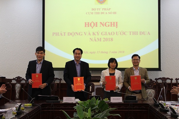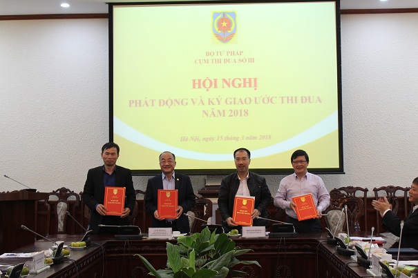 Tại Hội nghị, các đơn vị thuộc Cụm thi đua số III ký kết giao ước thi đua với tinh thần tự nguyện, quyết tâm cao của từng đơn vị và cùng nhau phấn đấu tham gia tích cực các hoạt động thi đua năm 2018 của Bộ Tư pháp nói chung và của Cụm nói riêng.
