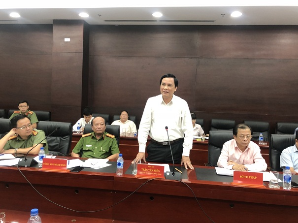 Tại cuộc họp, Thứ trưởng Đặng Hoàng Oanh - Trưởng đoàn công tác đã phát biểu về mục đích, yêu cầu nội dung làm việc của Đoàn và nhấn mạnh chỉ đạo của Phó Thủ tướng Thường trực Chính phủ Trương Hoà Bình về việc các tỉnh, thành phố trực thuộc trung ương phải tập trung chỉ đạo quyết liệt, chủ động trong việc xử lý các phương tiện giao thông đường bộ vi phạm hành chính bị tạm giữ tồn đọng tại các nơi tạm giữ theo các phương án phù hợp với điều kiện của địa phương.