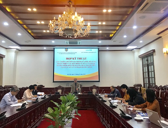 Tiếp tục thực hiện Kế hoạch hoạt động Dự án “Tăng cường tiếp cận tư pháp và bảo vệ người chưa thành niên có liên quan đến pháp luật năm 2019” đã được phê duyệt, ngày 21/11/2019, Cục Quản lý xử lý vi phạm hành chính và theo dõi thi hành pháp luật (Cục QLXLVPHC&TDTHPL), Bộ Tư pháp đã tổ chức Họp kỹ thuật lấy ý kiến chuyên gia nhằm sửa đổi, bổ sung, hoàn thiện các quy định về áp dụng các biện pháp xử lý hành chính đối với người chưa thành niên tại Luật xử lý vi phạm hành chính chính (Luật XLVPHC), phục vụ cho việc đề xuất, sửa đổi, bổ sung, hoàn thiện các quy định về vấn đề này tại dự thảo Luật sửa đổi, bổ sung một số điều của Luật XLVPHC.