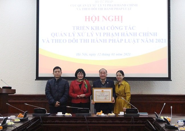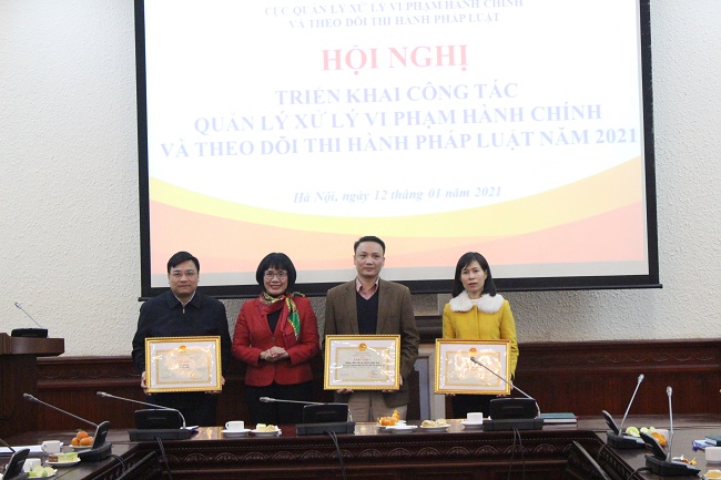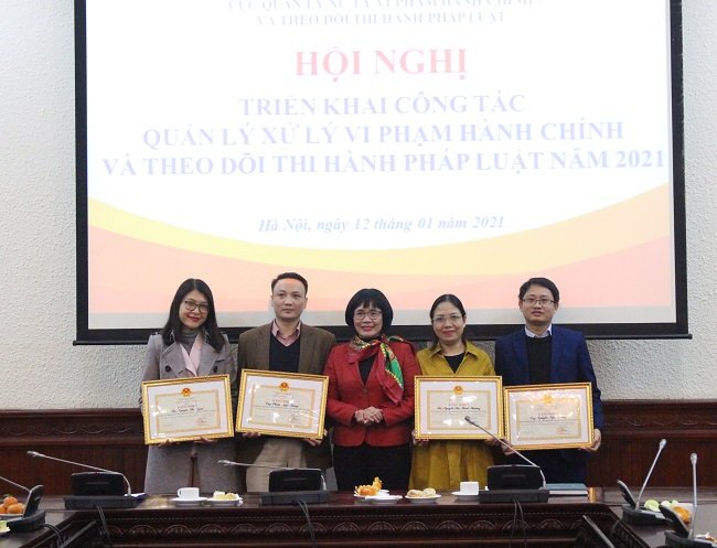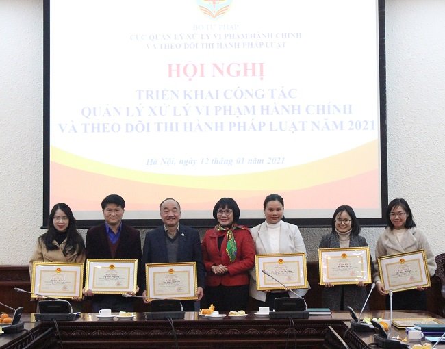 Tại Hội nghị, Thứ trưởng Đặng Hoàng Oanh đã trao Bằng khen của Bộ trưởng Bộ Tư pháp cho 03 tập thể, 04 cá nhân có thành tích xuất sắc trong công tác nâng xếp hạng chỉ số Chi phí tuân thủ pháp luật và 06 cá nhân có thành tích xuất sắc trong công tác năm 2019-2020.