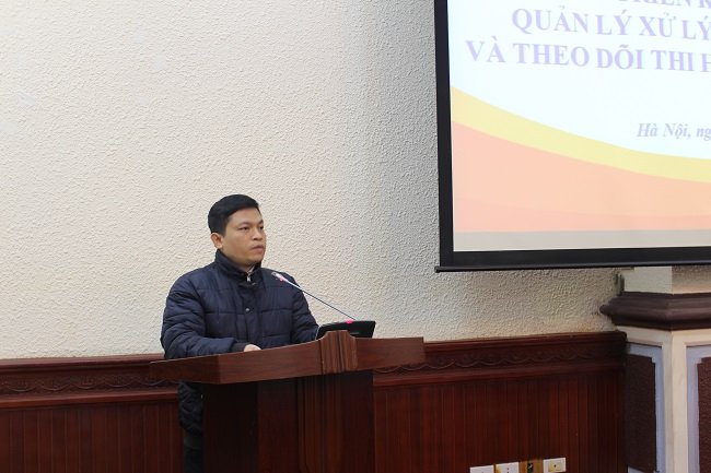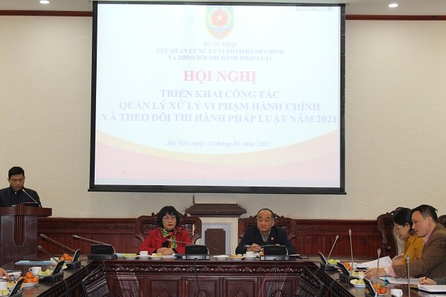 Thay mặt lãnh đạo Cục Quản lý XLVPHC và TDTHPL, Phó Cục trưởng Lê Thanh Bình báo cáo tóm tắt kết quả công tác năm 2020 và nhiệm vụ, giải pháp công tác năm 2021 của Cục QLXLVPHC&TDTHPL. Theo nội dung báo cáo, bên cạnh các nhiệm vụ thường xuyên theo chức năng, nhiệm vụ được giao của đơn vị, năm 2020 được đánh giá là năm có khối lượng công việc rất lớn, nội dung công việc phức tạp, đặc biệt trong công tác xây dựng thể chế, cùng với đó là sự ảnh hưởng không nhỏ của dịch bệnh Covid-19,... nhưng với tinh thần nỗ lực vượt khó, chủ động, sáng tạo, khẩn trương, bài bản trong triển khai Kế hoạch công tác, năm 2020 Cục QLXLVPHC&TDTHPL đã hoàn thành xuất sắc các nhiệm vụ theo Kế hoạch và các nhiệm vụ khác do Lãnh đạo Bộ giao, bảo đảm tiến độ, chất lượng công việc.