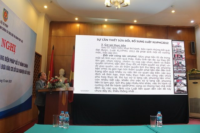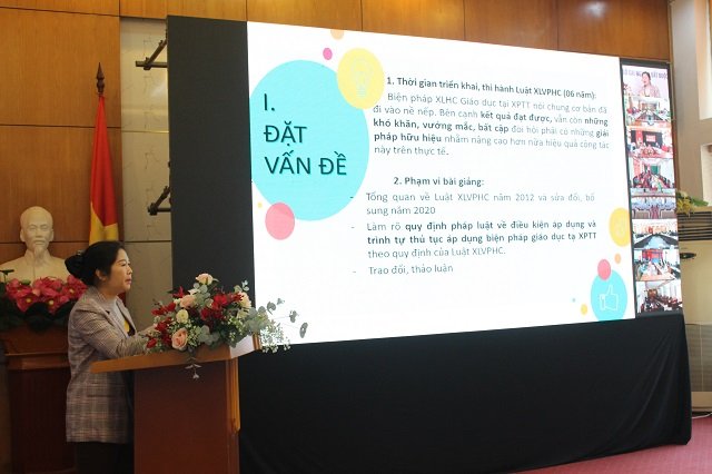 Tại hội nghị tập huấn các giảng viên đã tập trung truyền tải các nội dung liên quan đến một số vấn đề chung về pháp luật xử lý vi phạm hành chính và các biện pháp xử lý hành chính - Một số điểm mới của Luật sửa đổi, bổ sung một số điều của Luật Xử lý vi phạm hành chính năm 2012. Các quy định cụ thể về áp dụng các biện pháp xử lý hành chính giáo dục tại xã, phường, thị trấn và đưa vào cơ sở cai nghiện bắt buộc, các quy định mới của Luật đổi và bổ sung một số điều của Luật XLVPHC năm 2012 liên quan đến hai biện pháp xử lý hành chính sẽ có hiệu lực từ ngày 1/1/2022.