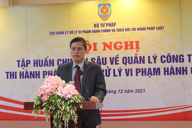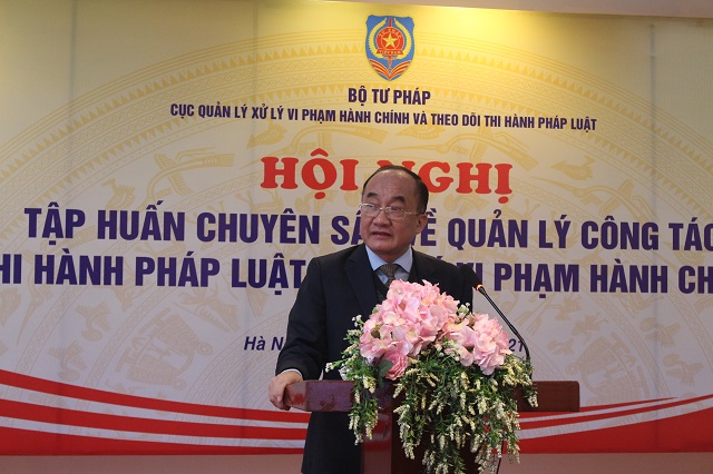 Đồng chí Đặng Thanh Sơn, Cục trưởng -Cục Quản lý xử lý vi phạm hành chính và theo dõi thi hành pháp luật đã tham khai mạc và truyền tải tại tại hội nghị tập huấn. Đại biểu tham dự Hội nghị tập huấn là các cán bộ liên quan đến công tác xử lý hành chính và trực tiếp thực hiện các nhiệm vụ liên quan đến công tác quản lý xử lý vi phạm hành chính trong phạm vi 04 tỉnh Bến Tre, Long An, Đồng Tháp và Tiền Giang, bao gồm: Đại diện Lãnh đạo và cán bộ Phòng Nội chính của Ủy ban nhân dân 04 tỉnh; đại diện Lãnh đạo và cán bộ Sở Tư pháp, Công an tỉnh và các Sở, ngành khác; đại diện lãnh đạo UBND, Trưởng phòng Tư pháp và các cán bộ của UBND các huyện/thành phố trên địa bàn 04 tỉnh nêu trên.