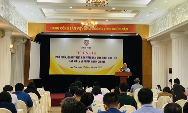 Sáng ngày 12/4/2022, Bộ Tư pháp đã tổ chức “Hội nghị phổ biến, quán triệt các văn bản quy định chi tiết Luật Xử lý vi phạm hành chính” do đồng chí Đặng Thanh Sơn – Cục trưởng Cục Quản lý xử lý vi phạm hành chính và theo dõi thi hành pháp luật chủ trì. Tham gia Hội nghị có các đại biểu đại diện cho các cơ quan: Bộ, cơ quan ngang bộ, cơ quan thuộc Chính phủ, Tòa án nhân dân tối cao, Kiểm toán Nhà nước, đại diện các UBND, Sở Tư pháp của các tỉnh, thành phố trực thuộc Trung ương thuộc khu vực miền Bắc, Bắc Trung Bộ.