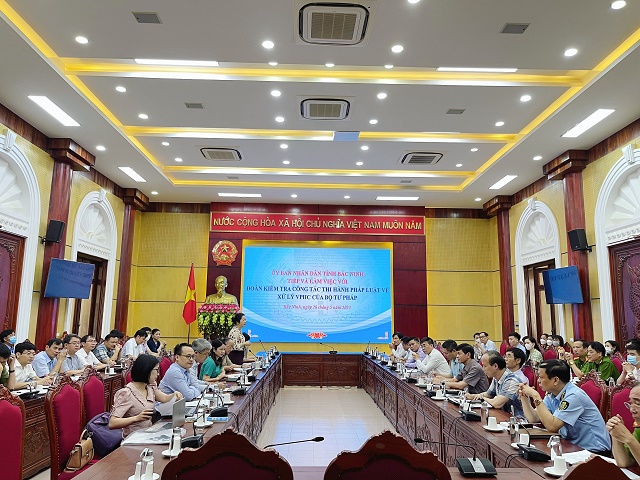 Tiếp và làm việc với Đoàn kiểm tra có đồng chí Ngô Tân Phượng – Phó Chủ tịch Ủy ban nhân dân tỉnh Bắc Ninh, cùng đại diện Lãnh đạo các sở, ngành (Sở Tư pháp, Sở Y tế, Sở Nông nghiệp và Phát triển nông thôn, Sở Tài chính, Sở Công Thương, Công an tỉnh, Chi cục Kiểm lâm, Cục Quản lý thị trường, Cục Thi hành án dân sự…) và các đơn vị có liên quan.
