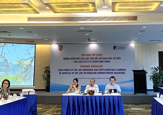 Được sự ủy quyền của Lãnh đạo Bộ Tư pháp, Ông Đặng Thanh Sơn, Cục trưởng Cục Quản lý xử lý vi phạm hành chính và theo dõi thi hành pháp luật (Cục QLXLVPHC&TDTHPL) cùng Ông Florian Feyerabend, Trưởng Đại diện Viện KAS tại Việt Nam và bà Nguyễn Thị Minh Phương, Phó Cục trưởng Cục QLXLVPHC&TDTHPL đồng chủ trì Hội nghị.