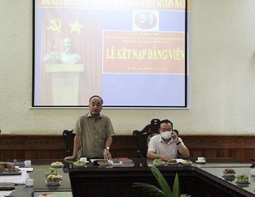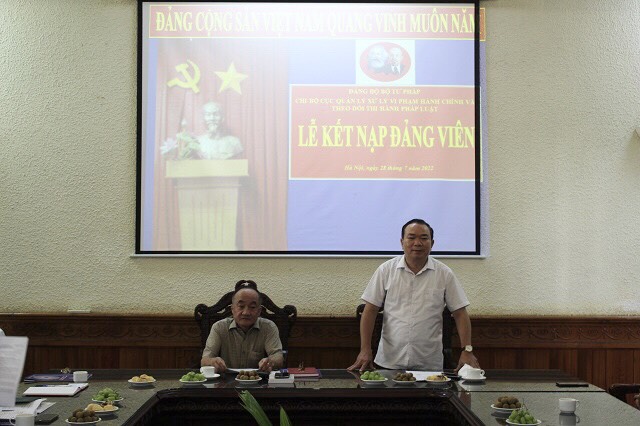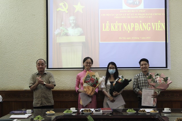 Thay mặt Chi ủy, đồng chí Bí thư đã giao nhiệm vụ cho Đảng viên mới và phân công đảng viên chính thức trong Chi bộ theo dõi, giúp đỡ các đồng chí đảng viên mới. Với tư cách là đảng viên, đồng chí đề nghị các đồng chí Đảng viên mới luôn nêu cao tinh thần trách nhiệm trong công tác, hoàn thành tốt các nhiệm vụ được giao, tuân thủ đúng quy tắc đạo đức nghề nghiệp, nghĩa vụ của người đảng viên góp phần vào sự vững mạnh của Chi bộ Cục Quản lý xử lý vi phạm hành chính và theo dõi thi hành pháp luật. Đồng thời đã thay mặt Chi bộ cảm ơn những ý kiến phát biểu chỉ đạo, sự quan tâm của đồng chí Nguyễn Kim Tinh, Phó Bí thư thường trực Đảng ủy Bộ Tư pháp tại Lễ kết nạp đảng viên mới. Đồng chí Bí thư mong muốn trong thời gian tới luôn nhận được sự giúp đỡ hỗ trợ từ Văn phòng Đảng đoàn thể và luôn nhận được sự quan tâm, chỉ đạo sát sao của Đảng ủy Bộ Tư pháp để Chi bộ Cục Quản lý xử lý vi phạm hành chính và theo dõi thi hành pháp luật luôn hoàn thành tốt nhất các nhiệm vụ, ngày càng hoàn thiện và lớn mạnh.