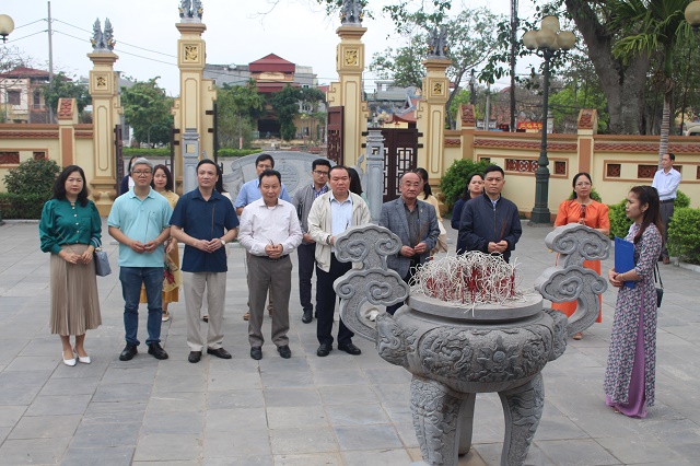 Đoàn đã đến dâng hương tại khu tưởng niệm Trung tướng Nguyễn Bình - Trung tướng đầu tiên của Quân đội nhân dân Việt Nam, người cộng sản kiên trung cũng mực, nhà chỉ huy tham mưu chiến lược xuất sắc, người ưu tú của vùng đất Hưng Yên.