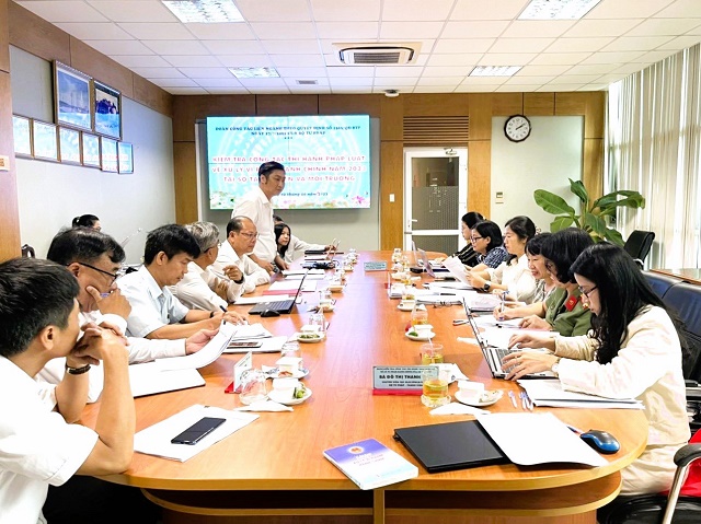 Tại buổi làm việc, đồng chí Đặng Hoàng Oanh - Trưởng Đoàn kiểm tra đã nhấn mạnh về ý nghĩa và sự cần thiết của nhiệm vụ quản lý công tác thi hành pháp luật về xử lý vi phạm hành chính và hoạt động thi hành pháp luật về xử phạt vi phạm hành chính. Mục đích của việc kiểm tra là nhằm nắm bắt đầy đủ, xác thực thực trạng tình hình triển khai nhiệm vụ quản lý công tác thi hành pháp luật về xử lý vi phạm hành chính; làm rõ những ưu, nhược điểm, khó khăn, vướng mắc trong nội dung các quy định pháp luật và tổ chức thực thi pháp luật về xử phạt vi phạm hành chính, đồng thời xác định rõ nguyên nhân của những tồn tại, hạn chế, vướng mắc, bất cập; qua đó, đề xuất về những giải pháp nhằm tháo gỡ khó khăn, vướng mắc, góp phần nâng cao hiệu lực, hiệu quả thực hiện nhiệm vụ quản lý nhà nước và thi hành pháp luật về xử lý vi phạm hành chính.
