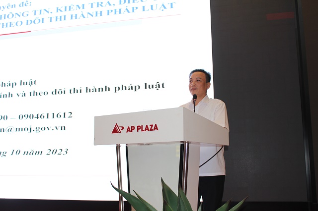 Tại Hội nghị các học viên đã được nghe các báo cáo viên truyền đạt các chuyên đề về: (i) Một số vấn đề chung về theo dõi tình hình thi hành pháp luật và những nội dung chủ yếu của Nghị định số 32/2020/NĐ-CP ngày 5/3/2020 sửa đổi, bổ sung một số điều của Nghị định số 59/2012/NĐ-CP ngày 23/7/2012; (ii) Kỹ năng xem xét, đánh giá tính kịp thời, đầy đủ của việc ban hành văn bản quy định chi tiết và tính hợp hiến, hợp pháp, tính thống nhất, tính đồng bộ và tính khả thi của văn bản quy phạm pháp luật; (iii) Kỹ năng xây dựng và tổ chức thực hiện kế hoạch chung theo dõi tình hình thi hành pháp luật - theo dõi tình hình thi hành pháp luật trong lĩnh vực trọng tâm, liên ngành; (iv) Kỹ năng nghiệp vụ cơ bản trong hoạt động thu thập, xử lý thông tin, kiểm tra tình hình thi hành pháp luật, xây dựng báo cáo theo dõi thi hành pháp luật và xử lý kết quả theo dõi thi hành pháp luật.