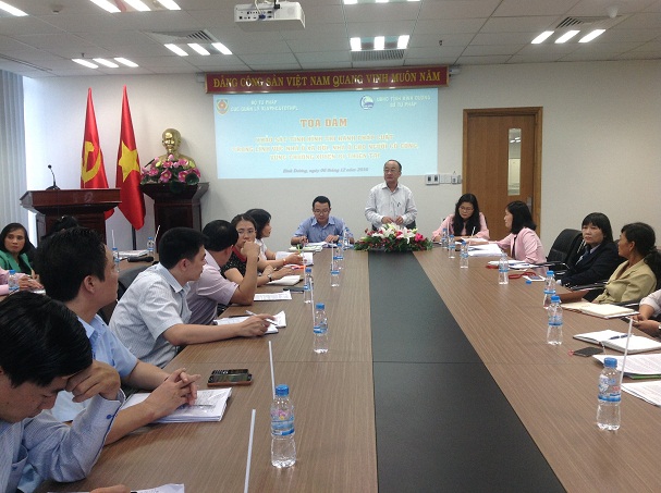 Tiếp tục thực hiện Kế hoạch theo dõi tình hình thi hành pháp luật trong lĩnh vực nhà ở xã hội, nhà ở cho người có công, vùng thường xuyên bị thiên tai (ban hành kèm theo Quyết định số 1126/QĐ-BTP ngày 26/5/2016 của Bộ trưởng Bộ Tư pháp), ngày 06/12/2016, Đoàn công tác liên ngành do đồng chí Đặng Thanh Sơn - Cục trưởng Cục Quản lý xử lý vi phạm hành chính và theo dõi thi hành pháp luật, được sự ủy quyền của Lãnh đạo Bộ Tư pháp làm Trưởng đoàn đã tiến hành kiểm tra về tình hình thi hành pháp luật trong lĩnh vực nhà ở xã hội, nhà ở cho người có công, vùng thường xuyên bị thiên tai tại tỉnh Bình Dương.
