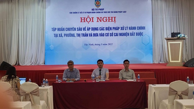 Nhằm tăng cường các kỹ năng, kiến thức pháp luật chuyên sâu về áp dụng biện pháp xử lý hành chính giáo dục tại xã, phường, thị trấn và đưa vào cơ sở cai nghiện bắt buộc cho các cán bộ trực tiếp thực hiện công tác này tại các tỉnh Tây Ninh, Long An và Bình Dương. Cục Quản lý xử lý vi phạm hành chính và theo dõi thi hành pháp luật, Bộ Tư pháp (Cục QLXLVPHC&TDTHPL) đã tổ chức thành công Hội nghị tập huấn chuyên sâu về Áp dụng biện pháp xử lý hành chính giáo dục tại xã, phường, thị trấn và đưa vào cơ sở cai nghiện bắt buộc tại tỉnh Tây Ninh trong các ngày 16-17/5/2022.