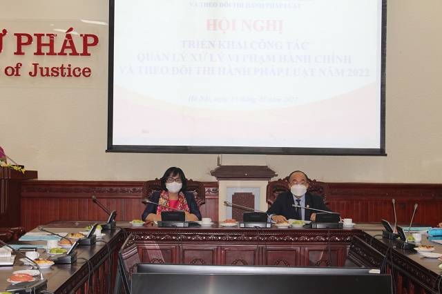Chiều ngày 14/01/2022, Cục Quản lý xử lý vi phạm hành chính và theo dõi thi hành pháp luật (Cục QLXLVPHC&TDTHPL) đã tổ chức Hội nghị triển khai công tác năm 2022. Thứ trưởng Bộ Tư pháp Đặng Hoàng Oanh đã đến dự và phát biểu chỉ đạo Hội nghị. Tham dự hội nghị còn có đại diện lãnh đạo một số đơn vị thuộc Bộ: Văn phòng Bộ, Vụ Các vấn đề chung về xây dựng pháp luật, Vụ Pháp luật hình sự - hành chính, Vụ Tổ chức cán bộ, Cục Kế hoạch – Tài chính… và các công chức, viên chức của Cục Quản lý XLVPHC và TDTHPL.