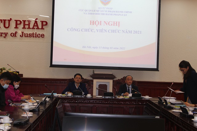 Ngày 13/01/2022, Cục Quản lý xử lý vi phạm hành chính và theo dõi thi hành pháp luật (Cục QLXLVPHC&TDTHPL) đã tổ chức thành công Hội nghị công chức, viên chức, người lao động Cục QLXLVPHC&TDTHPL năm 2021. Tham dự Hội nghị có tập thể Lãnh đạo và toàn thể công chức, viên chức thuộc Cục. Tại Hội nghị, các đại biểu tham dự Hội nghị đã được nghe các báo cáo như: Báo cáo kiểm điểm việc thực hiện các nghị quyết, chủ trương, chính sách của Đảng, pháp luật của Nhà nước và thực hiện dân chủ trong hoạt động của đơn vị; Báo cáo công tác của Công đoàn Cục năm 2021 và phương hướng năm 2022, Báo cáo công khai tài chính năm 2021, Báo cáo kết quả hoạt động năm 2021 của Ban Thanh tra nhân dân.