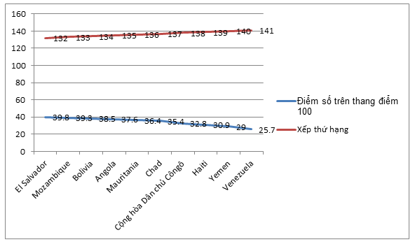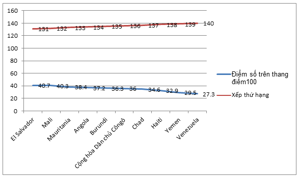 Thứ nhất, năm 2019, có 08/10 quốc gia vẫn thuộc danh sách 10 quốc gia có vị trí xếp thứ hạng thấp nhất về trụ cột thể chế như năm 2018: