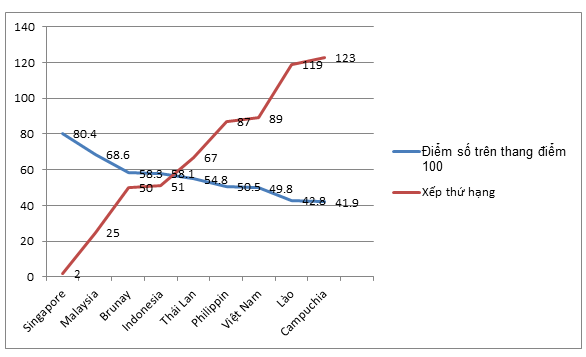 Hai là, Brunay: năm 2019 giảm 05 bậc so với năm 2018 (năm 2018, xếp thứ 45/140 quốc gia; năm 2019, xếp thứ 50/141 quốc gia).