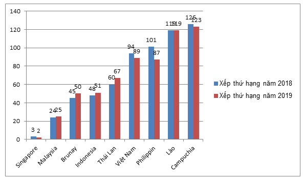 Một là, Singapore: Năm 2019 tăng 01 bậc so với năm 2018 (Năm 2018 xếp thứ 3/140 quốc gia. Năm 2019, xếp thứ 2/141 quốc gia).